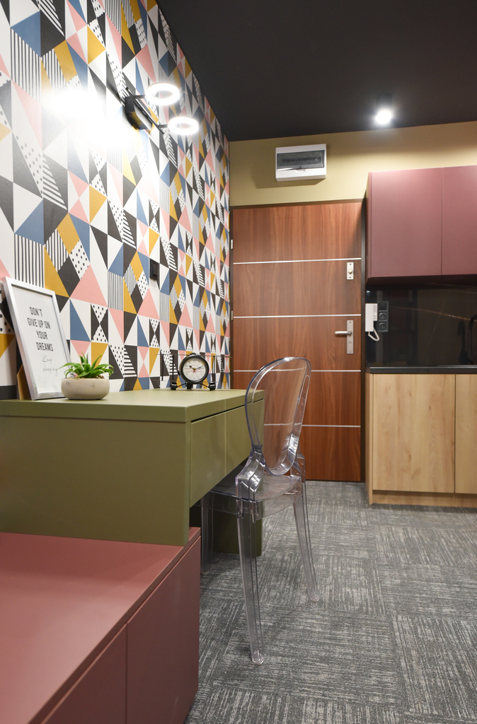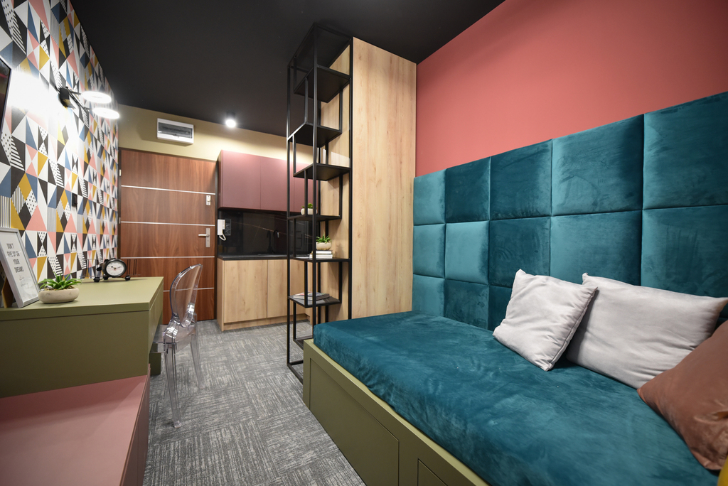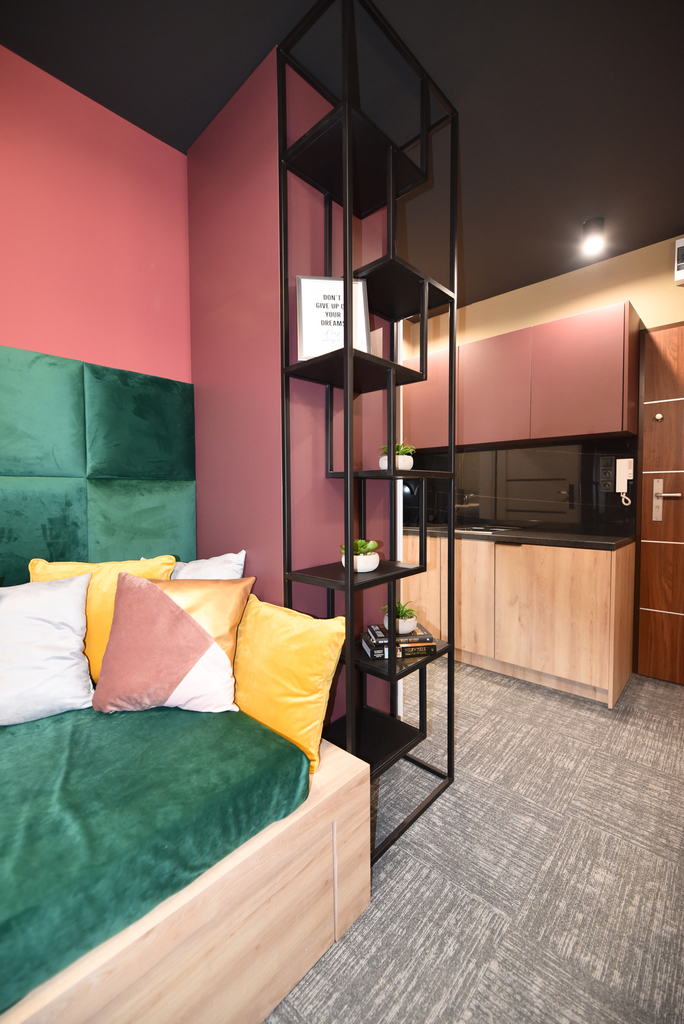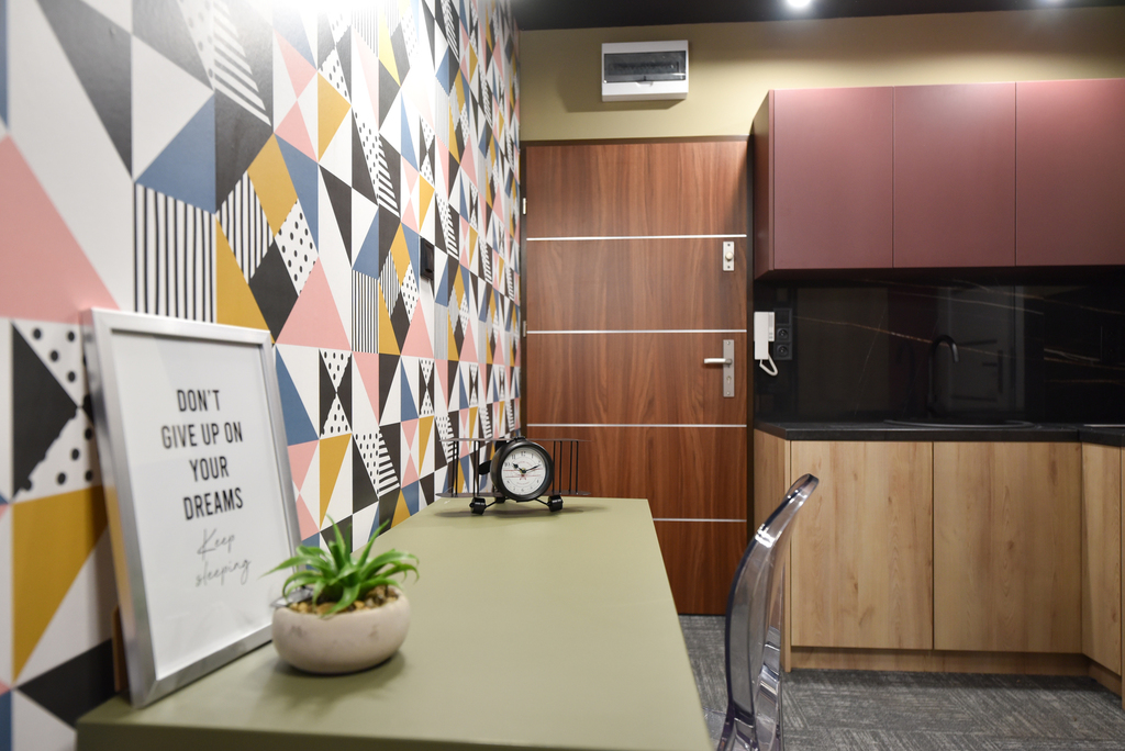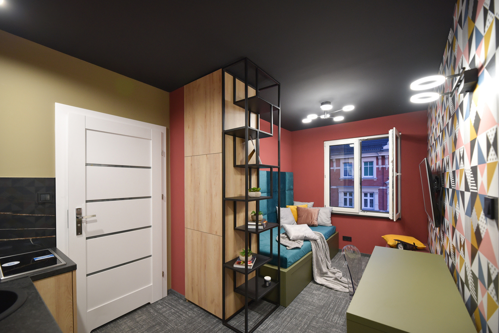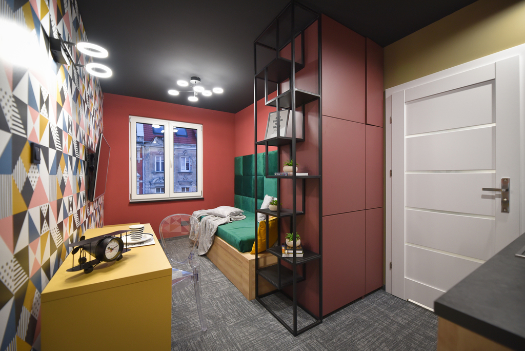 Mieszkanie posiada oddzielne wejście. Składa się z pokoju z aneksem kuchennym oraz łazienki, każde z osobna.